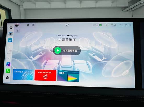 在整个座舱内,两块14.96英寸的2K级别大屏合在一起,我们想要的娱乐甚至说任何需求都能“说到即做到”。像网易云音乐、爱奇艺、哔哩哔哩、潮汐等功能应有尽有,还有丰富的杜比全景声内容资源、5D独家片源等,配合小鹏音乐厅简直爽到飞起。